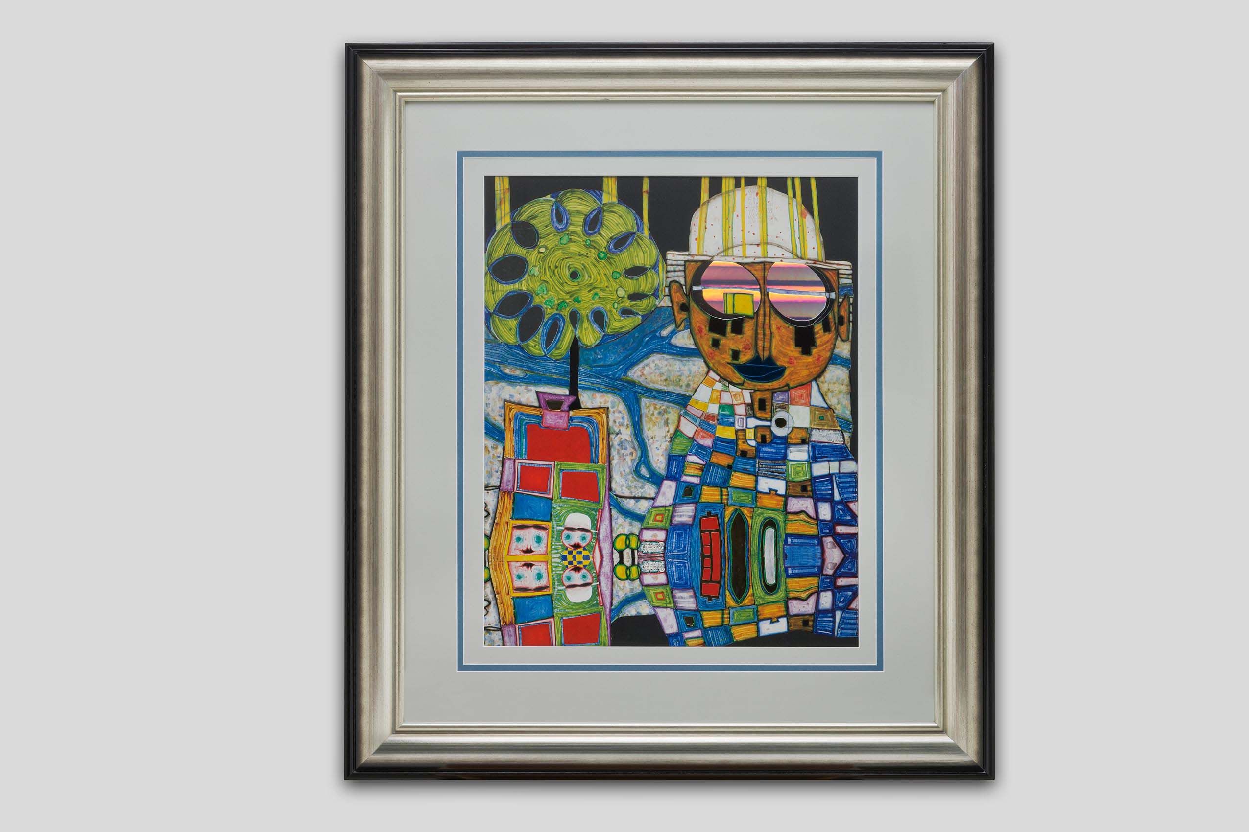 Lithografie von Hundertwasser Friedensreich inscription