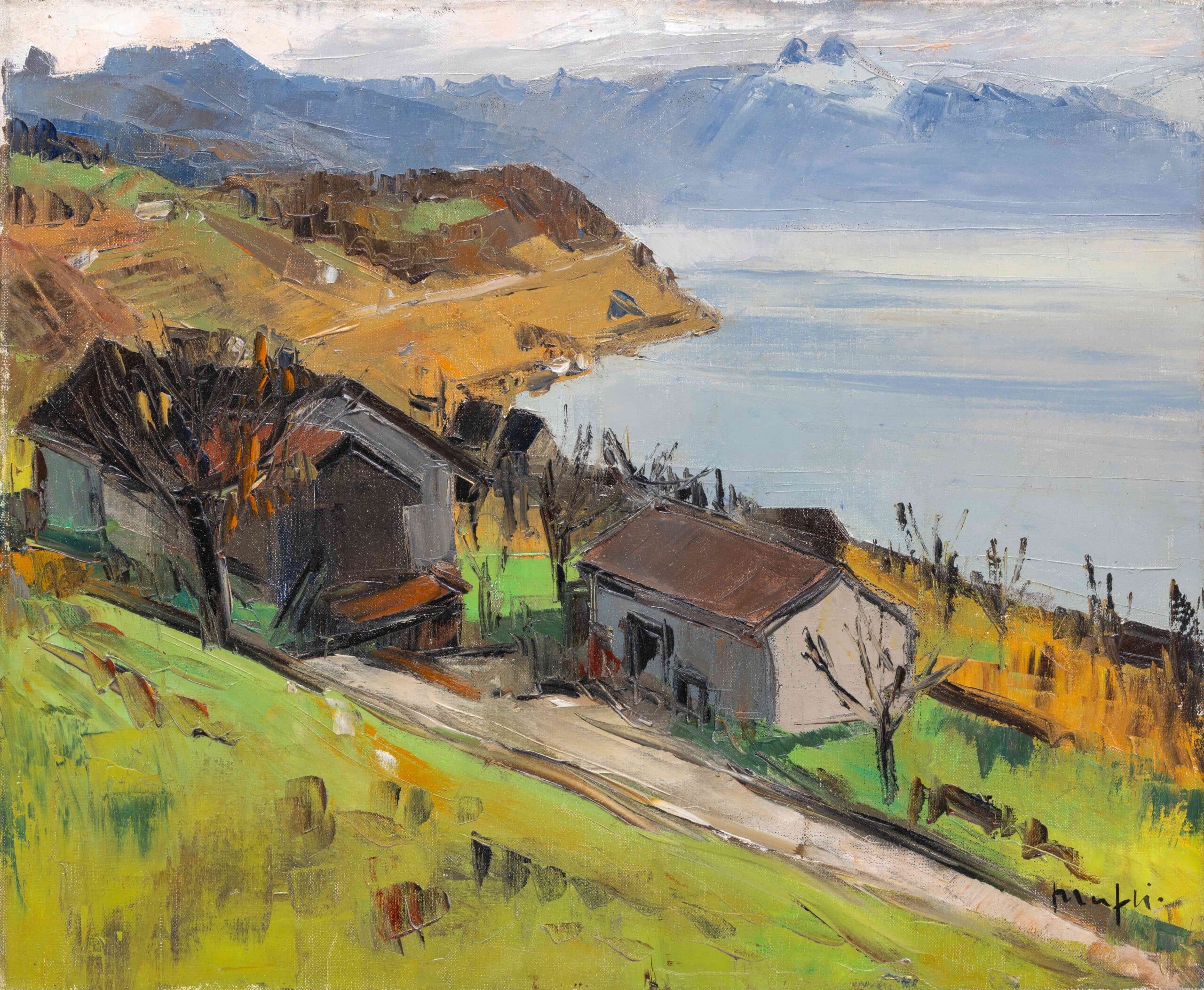 Huile sur toile de Mafli Walter – Neuf, feuille or blanc